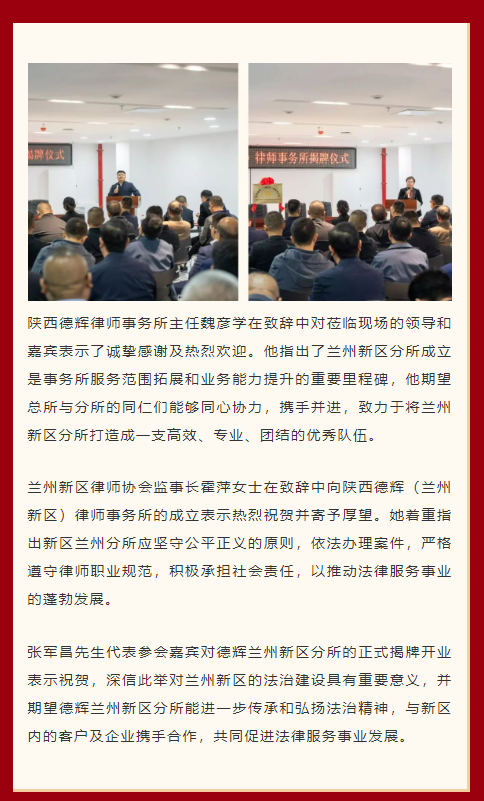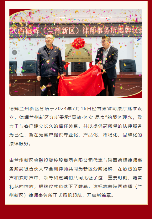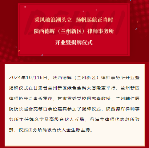 德辉动态 | 乘风破浪潮头立 · 扬帆起航正当时 陕西德辉(兰州新区)律师事务所开业暨揭牌仪式