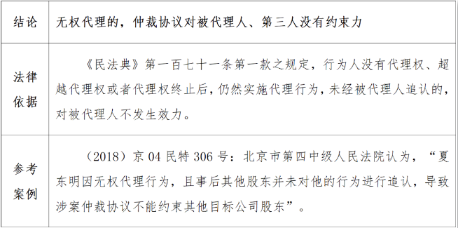 (三)构成表见代理的,仲裁协议是否约束被代理人、第三人存在争议