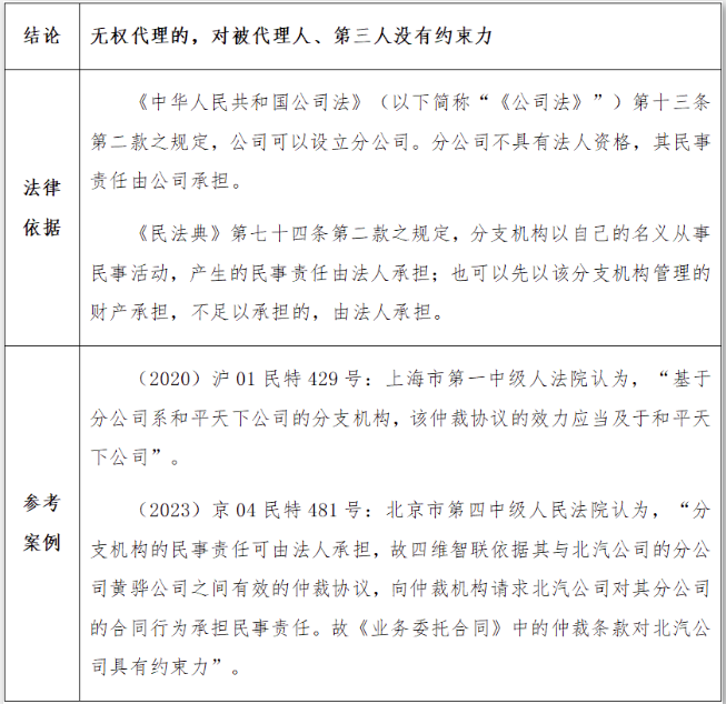 2.认为仲裁效力不及于法人/分支机构的观点理由: