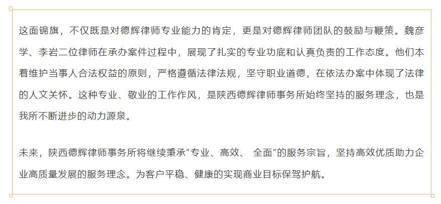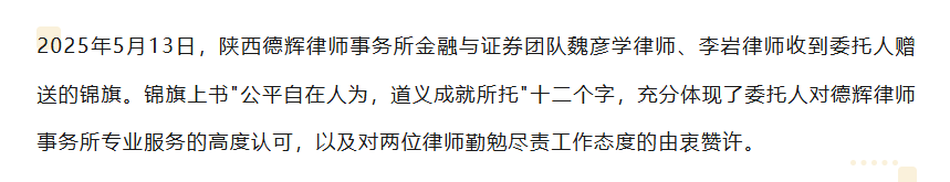 德辉佳讯 | 匠心彰显正义,专业成就信赖--我所魏彦学律师、李岩律师获赠锦旗